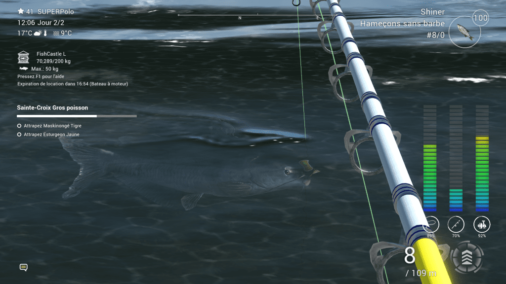 - Utilisez le système de progression pour améliorer votre équipement progressivement : au fur et à mesure que vous progressez, vous débloquerez des nouvelles cannes, moulinets, et leurres qui vous permettront de capturer de plus grandes espèces.