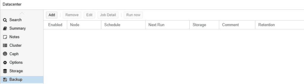 - Désigne l’emplacement de stockage où les sauvegardes seront stockées. Il peut s’agir d’un espace de stockage local sur le serveur Proxmox, ou d’un stockage externe tel qu’un périphérique de stockage en réseau (NAS) ou un système de stockage sur cloud. Le choix de l’emplacement de stockage dépend des besoins et des préférences de l’utilisateur, ainsi que des contraintes techniques et budgétaires.